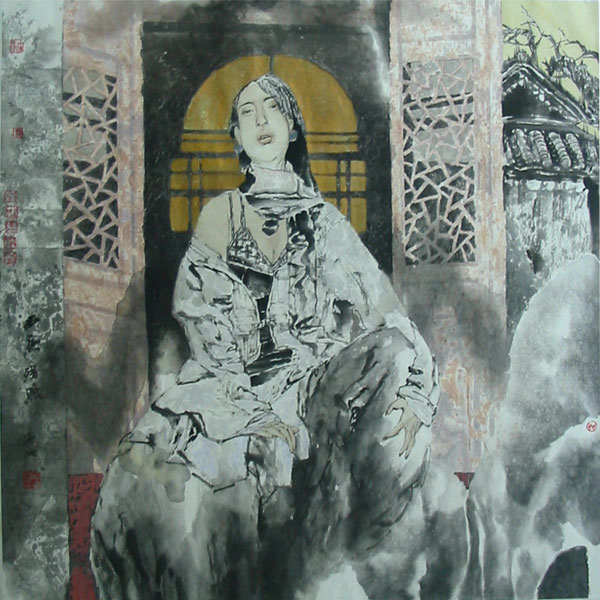 以下是岳海波老师的国画人物