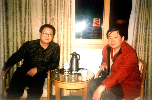 著名学者,凤凰卫视知名主持人王鲁湘(左)和协会主席亓均在北京凤凰岭美术馆